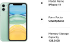 Apple iPhone 11, US Version, 128GB, Green Brand Apple Model Name iPhone 11 Wireless Carrier Unlocked OS iOS Cellular Technology LTE, UMTS, HSPA, HSDPA, GSM, EDGE Memory Storage Capacity 128 GB Connectivity technologies Wi-Fi